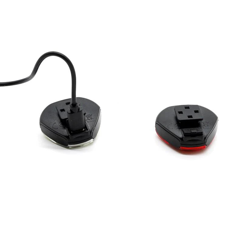 Juego de luces LED frontal y trasera de alta potencia para una visibilidad óptima en cualquier situación. Diseñado para ofrecer una iluminación brillante y eficiente que mejora la seguridad durante tus desplazamientos.
